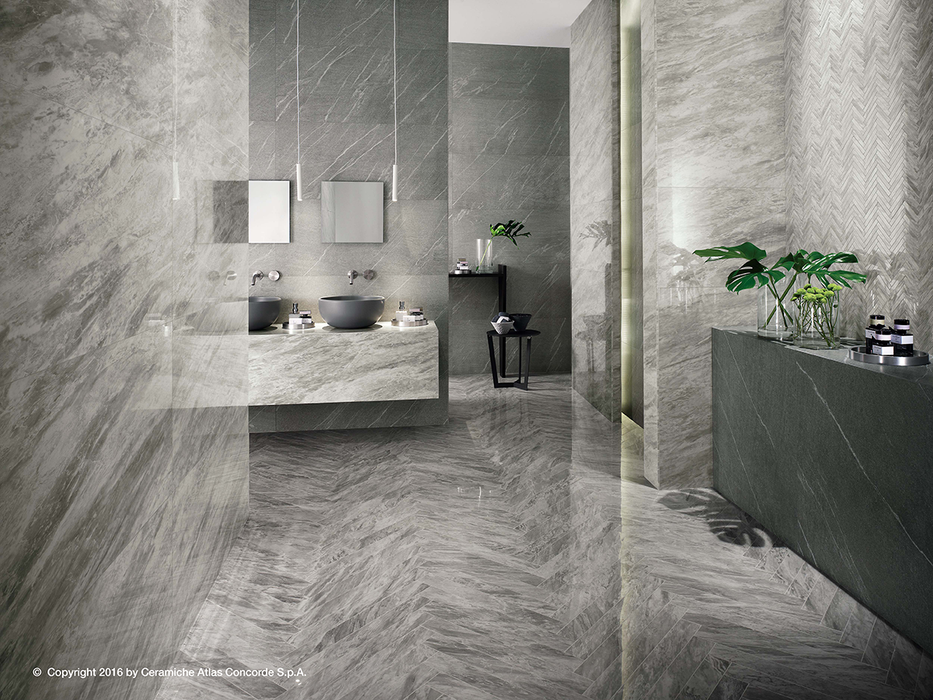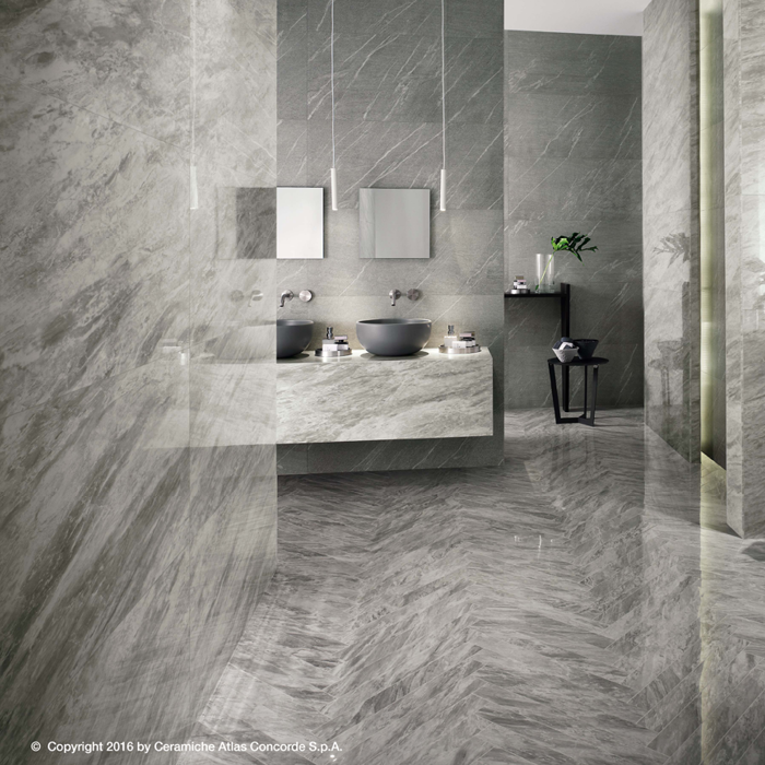 Beautiful marble effect surface that combines aesthetic refinement with the versatility and practicality of porcelain tiles. The polished finish offers a high gloss look and is very smooth to the touch.